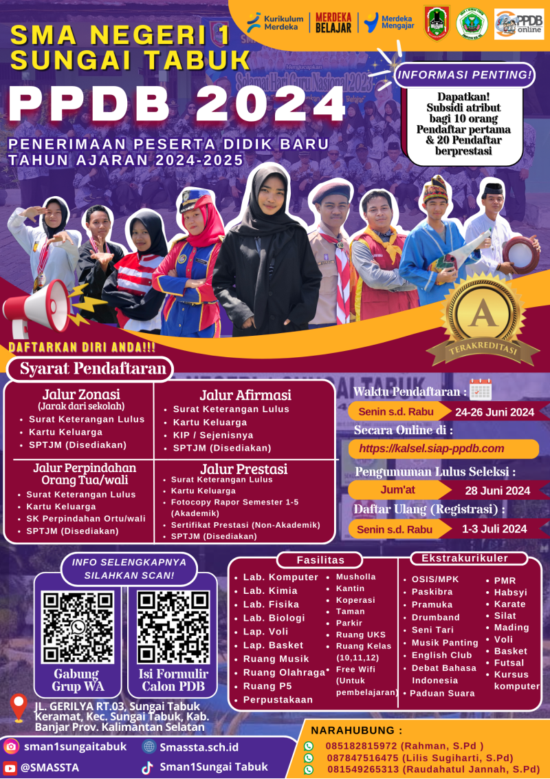 PENERIMAAN PESERTA DIDIK BARU SMAN 1 Sungai Tabuk telah dibuka: