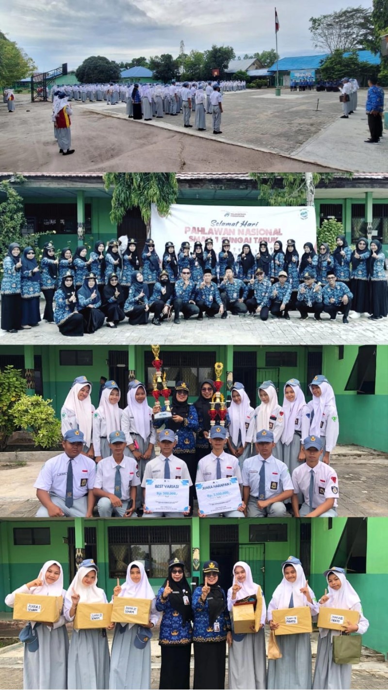 Sungai Tabuk, 10 November 2025 — Dalam rangka memperingati Hari Pahlawan Nasional yang jatuh setiap tanggal 10 November, SMAN 1 Sungai Tabuk melaksanakan upacara bendera di lapangan sekolah pada Senin pagi. Kegiatan berlangsung dengan penuh khidmat dan diikuti oleh seluruh guru, tenaga kependidikan, serta peserta didik.